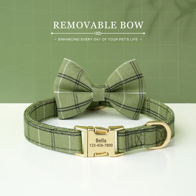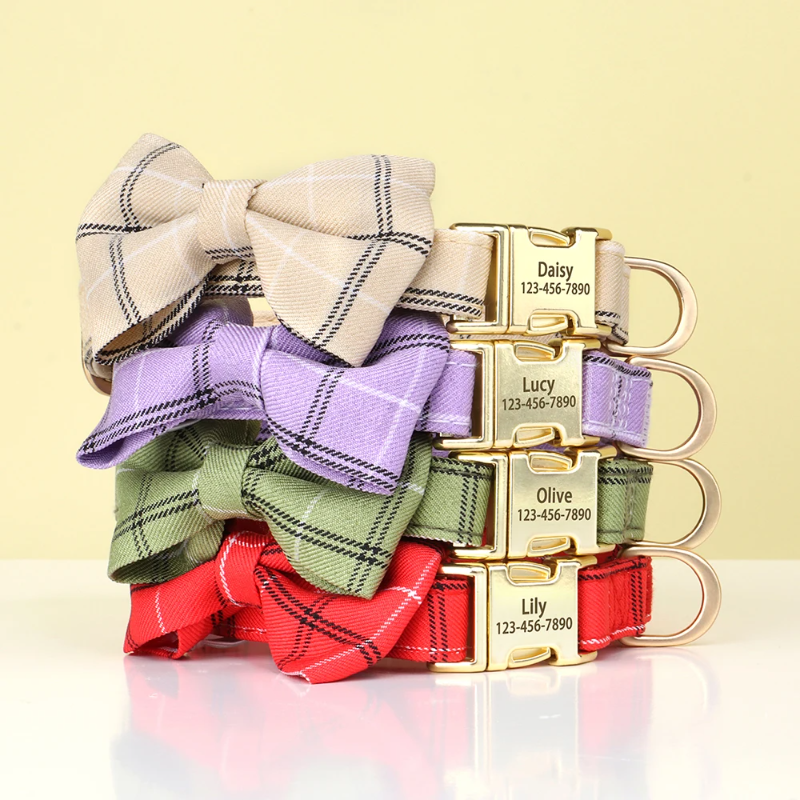 Give your dog a touch of timeless charm with the CharmingBow Personalized ID Dog Collar. Designed for small and medium dogs, this adjustable collar combines cute bowtie style with essential safety — including free ID engraving. Made from durable, pet-friendly materials, it ensures long-lasting comfort and a secure fit for daily walks, photoshoots, and special outings.