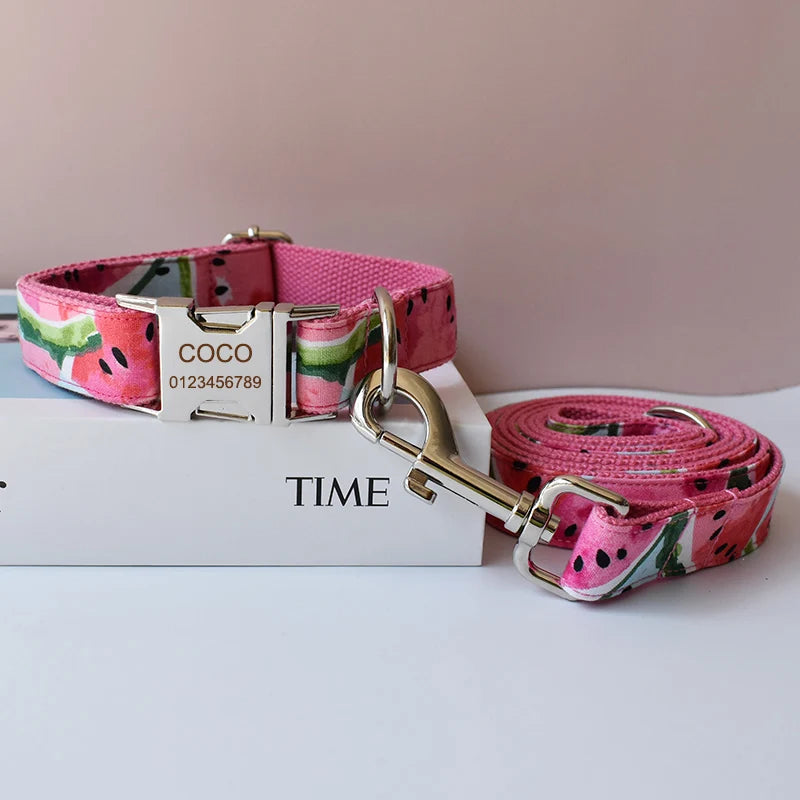 Watermelon Personalized Pet Bowknot Dog Collar And Leash Set