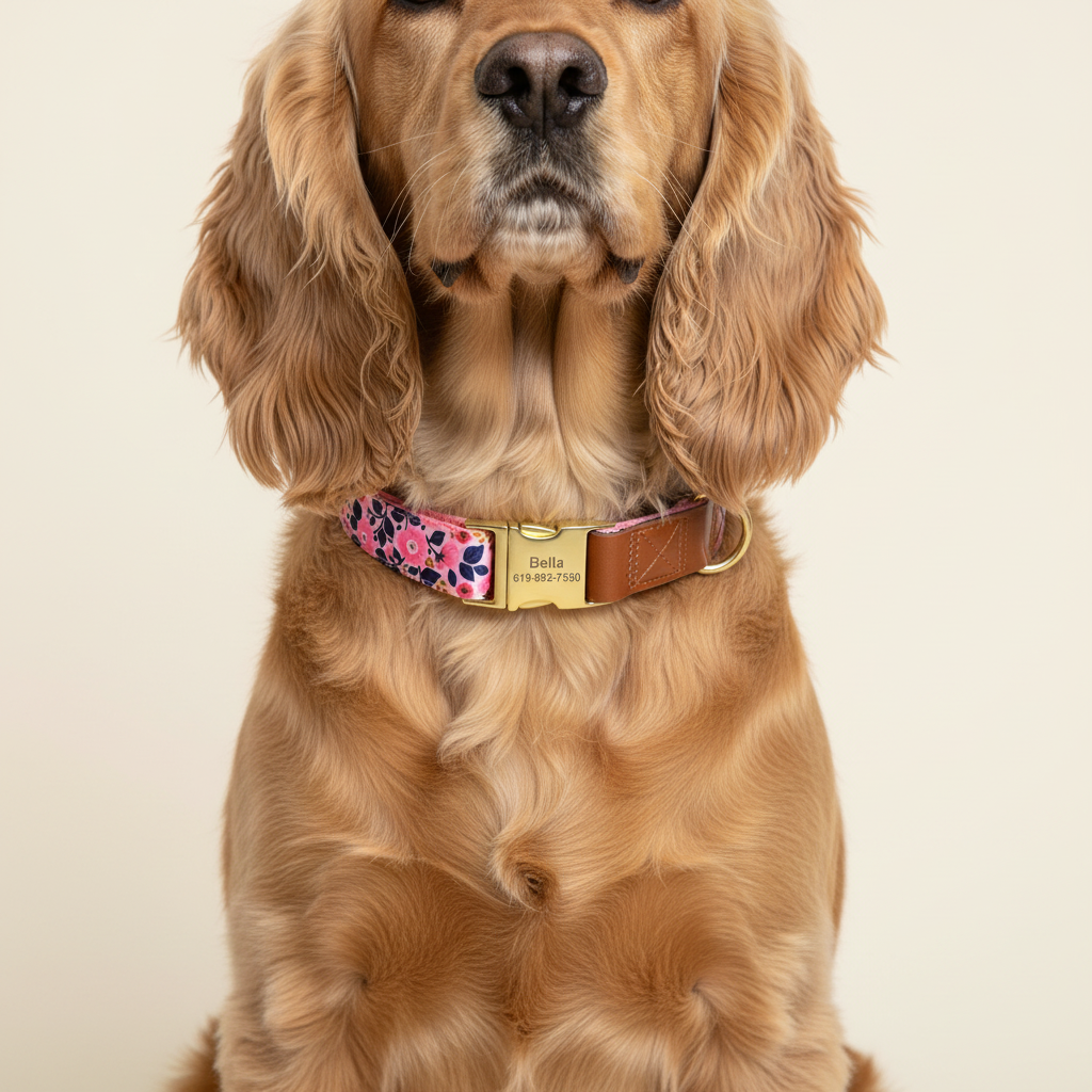 Seu cão merece se destacar e ficar seguro — e a coleira Bloom & Be Found faz as duas coisas lindamente! 🌺 Esta coleira ajustável com estampa de flores foi projetada para filhotes de todos os tamanhos e vem com uma placa de identificação personalizada gravada para manter seu amigo peludo seguro caso ele se perca. Não é apenas uma coleira — é uma declaração de moda com tranquilidade. Ideal para Frenchies, Fluffs e fabulosas bolas de pelo em qualquer lugar! 🐕🦺💕