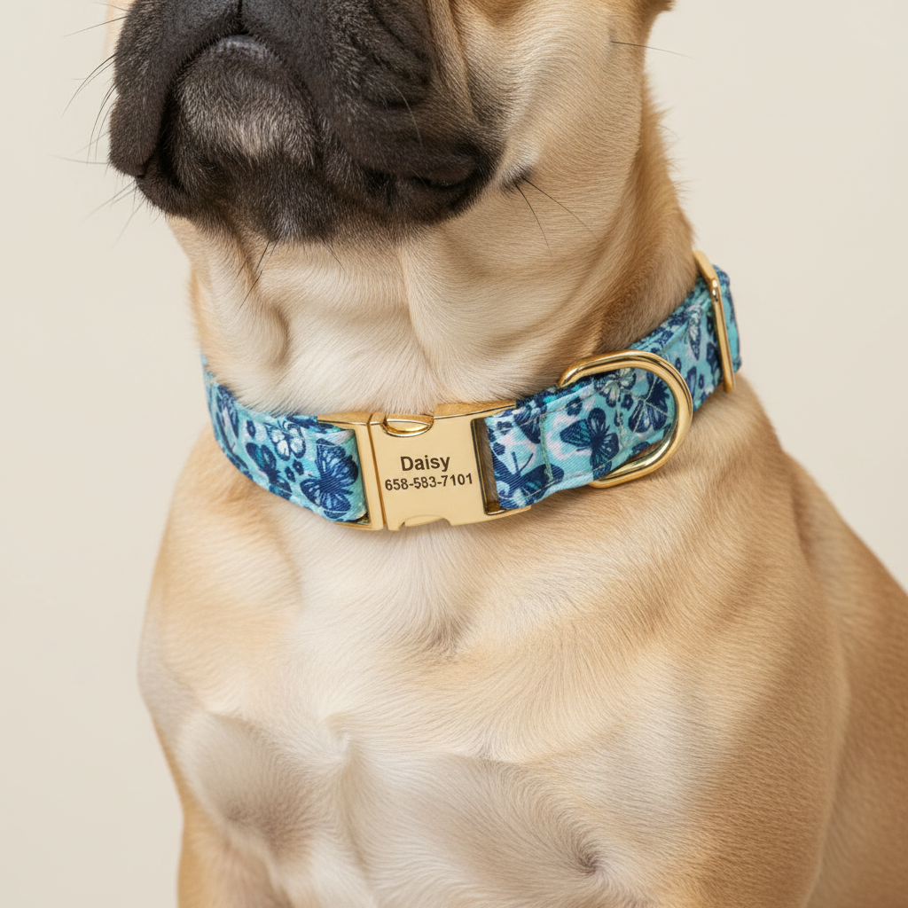 Chiques, confortáveis e personalizadas. Estas coleiras têm uma fivela gravada com o nome do seu cão e suas informações de contato — sem necessidade de etiquetas, apenas estilo e segurança, tudo em um.