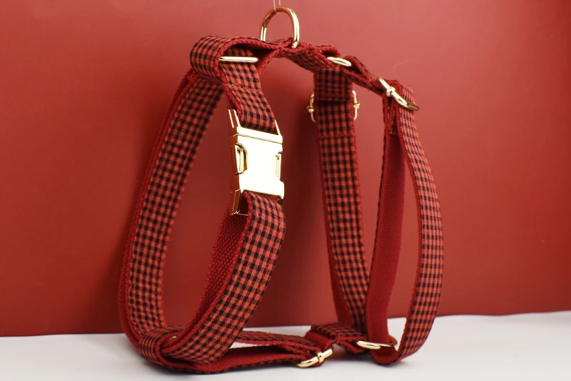 Conjunto de coleira e acessórios personalizados para cães em vermelho, perfeito para as festas de fim de ano – Coleira, peitoral e trela com gravação personalizada.