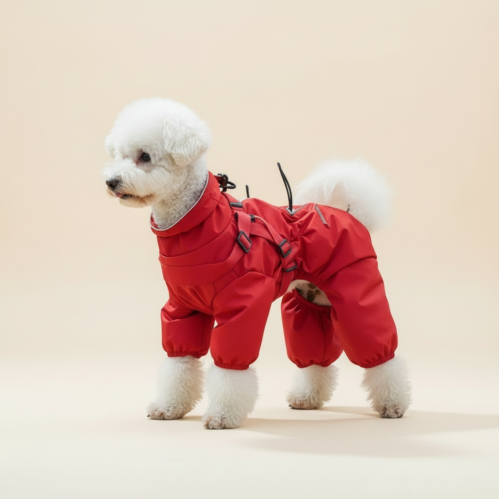 Facilite os passeios na chuva com o PawsRaincoat™ , a capa de chuva completa e definitiva com arnês integrado para cães. Este design inovador combina proteção contra intempéries com praticidade para caminhadas, mantendo seu cão seco e seguro durante passeios em tempo chuvoso. Confeccionado em tecido impermeável e respirável, o PawsRaincoat™ garante o conforto do seu cãozinho, protegendo-o da chuva e da lama. O arnês integrado permite a fixação rápida da guia, eliminando a necessidade de equipamentos separados. Elegante, funcional e perfeito para cães aventureiros!