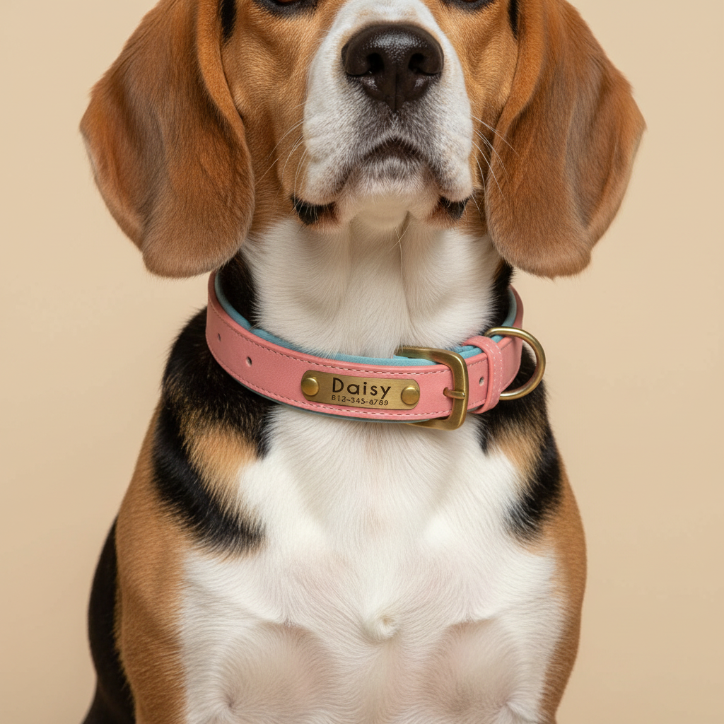 Chiques, confortáveis e personalizadas. Estas coleiras têm uma fivela gravada com o nome do seu cão e suas informações de contato — sem necessidade de etiquetas, apenas estilo e segurança, tudo em um.