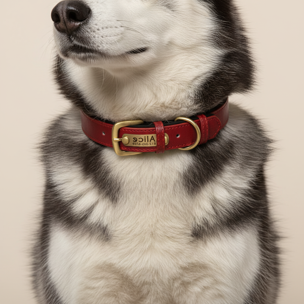Feita em couro PU premium, esta coleira oferece uma alternativa elegante e sem crueldade ao couro tradicional, mantendo o mesmo visual clássico. Possui uma placa de identificação em metal durável e gravada para detalhes de identificação personalizados, garantindo que seu cão permaneça seguro e estiloso.