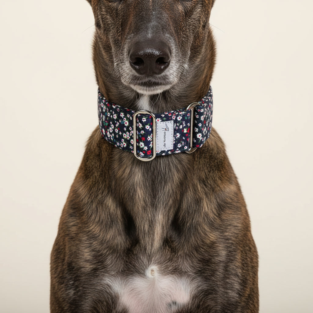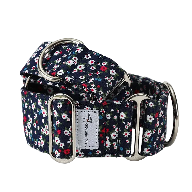 👑 Estilo e segurança para cães elegantes e velozes! A Coleira GraceStride Martingale foi cuidadosamente projetada para galgos italianos, whippets e outras raças de cabeça estreita. Com sua faixa larga de algodão estampada e alça de controle suave, esta coleira é tão segura quanto deslumbrante.