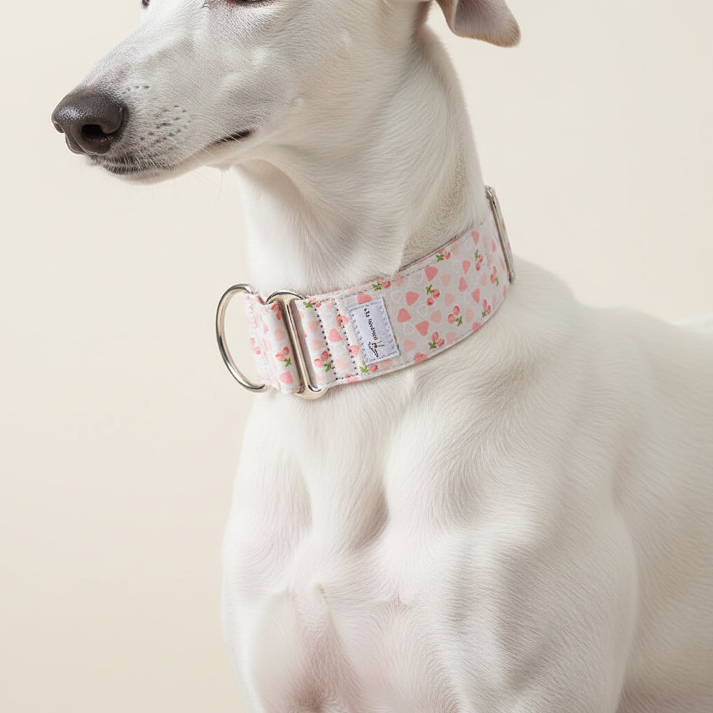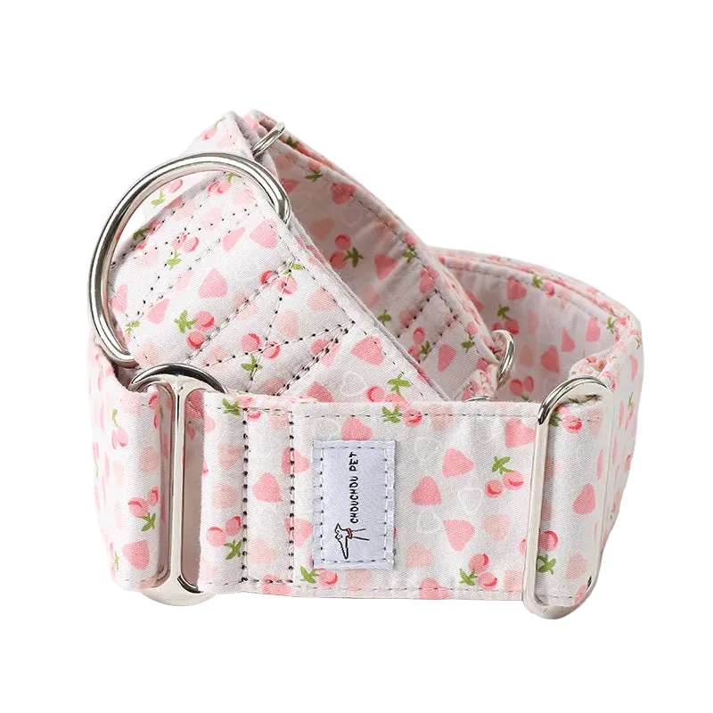 👑 Estilo e segurança para cães elegantes e velozes! A Coleira GraceStride Martingale foi cuidadosamente projetada para galgos italianos, whippets e outras raças de cabeça estreita. Com sua faixa larga de algodão estampada e alça de controle suave, esta coleira é tão segura quanto deslumbrante.